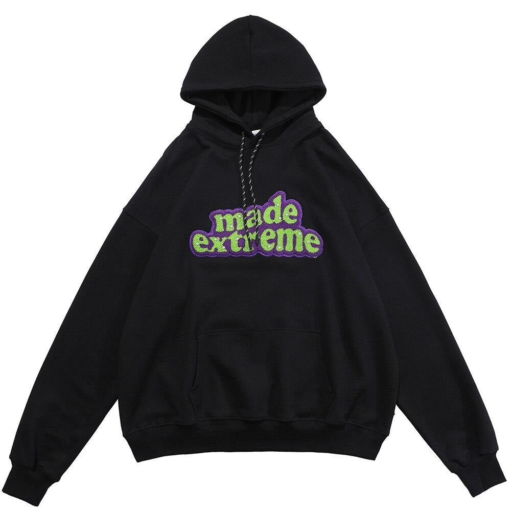 Men Hit Color Letter Patch Diamonds Hoodies Sweatshirt Men Big Pocket Casual Pullover High Street Couple Streetwear Men